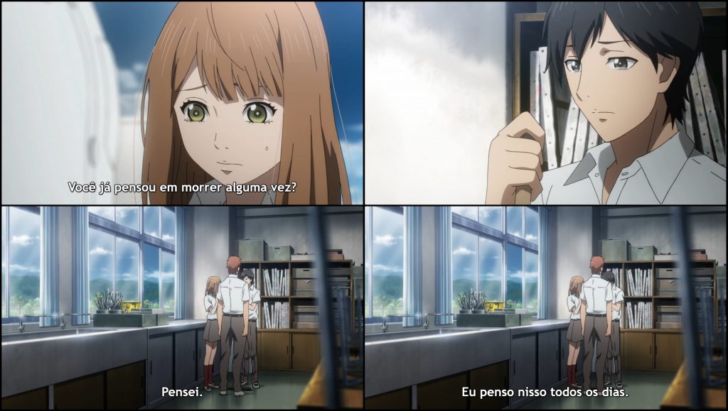 A qualidade da animação decai em alguns episódios e só por isso ela não ganha a nota máxima, mas a história continuou me tocando e me marcando. A depressão de Kakeru se torna palpável e muito mais real em uma animação. Suas ações, palavras e sorrisos falsos doem ainda mais. Para quem leu o mangá e lembra da corrida no festival da escola, saiba que no anime foi o meu episódio favorito (o episódio 10 para quem se interessar).