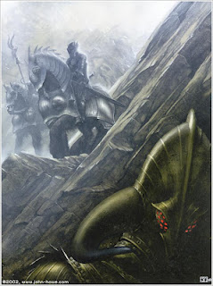 Bom, se deliciaram com um pouquinho dos contos? E com as imagens? Conforme disse, vou explicar quem é John Howe. Ele é o responsável pelas ilustrações do Senhor dos Anéis! Isso mesmo, quem é habituado à trilogia pode ter desconfiado ao ver os traços nas imagens acima. Ele também contribuiu com a concepção visual da adaptação de Peter Jackson.