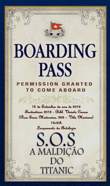 Saudações, leitores! Sem dúvida alguma o naufrágio do Titanic é um fato que a maioria de vocês devem conhecer, mas e se houvessem mais fatos envolvidos neste acontecimento além dos que a imprensa da época divulgou? Obviamente neste ponto ficção e realidade se cruzam e abrem espaço para que pessoas dotadas de imaginação aliada a uma boa escrita criem excelentes contos de terror! Pensando nisso, foi que as organizadoras Bruna Caroline e Tatiana Ruiz, juntamente com a Editora Literata, conceberam a antologia “S.O.S – A Maldição do Titanic” e agora convidam a todos para o lançamento! Informações abaixo: