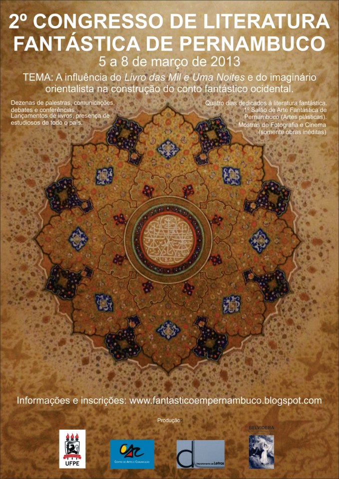 Saudações, caros leitores! Literatura fantástica é uma das mais queridas e está crescendo com grande força em nosso país, obviamente é esperado que muitos eventos que tratem do assunto aconteçam em todas as regiões, logo é com muita alegria que estou divulgando o 2º Congresso de Literatura Fantástica de Pernambuco! O evento tem entrada gratuita, mas acessem o site do evento e se informem completamente acerca de tudo.