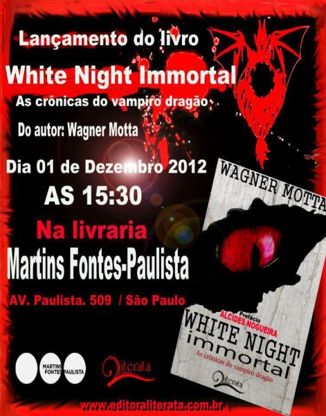 Saudações, caros leitores! Quem gosta de livros com seres fantásticos? A resposta, indubitavelmente, será um “Eu!” para a maioria esmagadora, então estou lhes avisando sobre o lançamento do livro “White Night Immortal: As Crônicas do Vampiro Dragão”, escrito por Wagner Motta (Eddy Khaos), Editora Literata.