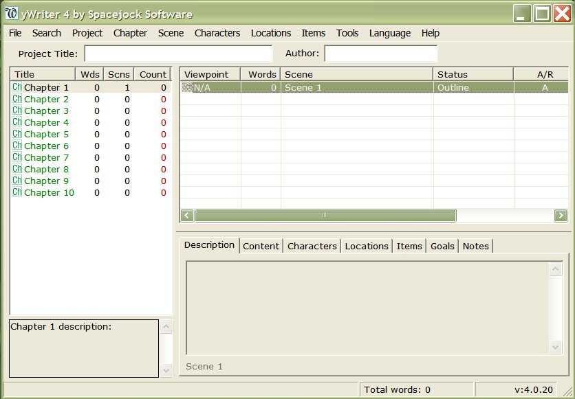 O yWriter é legal para organizar o projeto antes de efetivamente começar a escrever o livro.