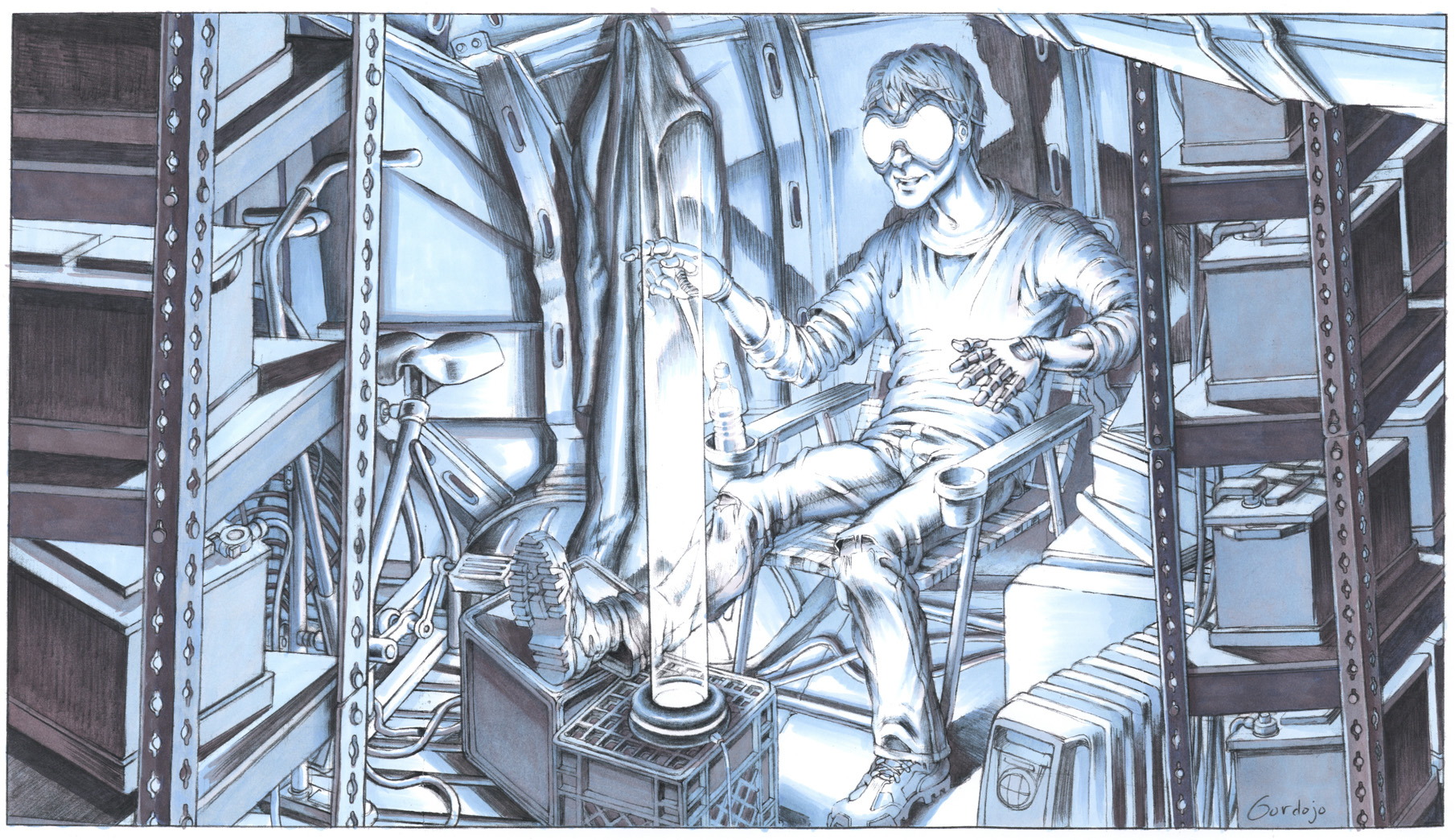 O OASIS é o sonho de muita gente hoje em dia – posso confessar que o meu também. Imagine fazer tudo sem sair de casa? Ir à escola, trabalhar, fazer compras… Para acessar o OASIS você usa um óculos e uma luva que permitem total imersão no mundo 3D e é até capaz de sentir as coisas que pega. Mais tarde vemos que existem roupas especiais que dão uma sensação maior de realidade e até um dispositivo que lhe permite sentir aromas e odores no mundo virtual.
