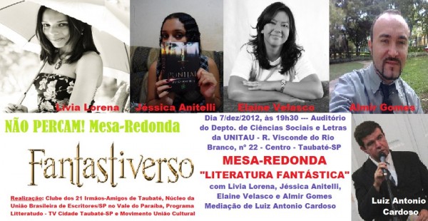 Saudações, caros leitores! Toda a oportunidade para conversar sobre literatura é motivo para alegria, afinal somos leitores cabulosos, verdadeiros amantes dos livros e estou divulgando mais uma oportunidade para um excelente bate-papo. Trata-se de uma mesa redonda organizada pelo grupo Fantastiverso.