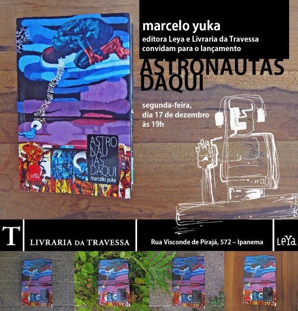 Astronautas Daqui é navegável em quatro capítulos. Poesia Anti Completa é como Marcelo Yuka chama sua coleção de frases, que podem passar anos a espera de um complemento em cadernos e folhas soltas. Canções Pra Depois do Ódio é o livro de poesia que foi escrito nos últimos dois anos, o que ele chama de “o escoamento de uma vida sem confortos”. Ócio é o nome de uma banda imaginária e engraçada, mas nem tanto, a revolta roqueira inicialmente branda, de sacanagem, que chega contundente ao poema Anjos da Carniça. Por Final estão as letras de música, seu universo mais frequente, onde sua voz autoral reverbera com a do público.