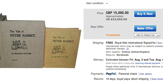 8. Beatrix Potter, “A História de Peter o Coelho –Tale of Peter Rabbit” (primeira edição, 1902)