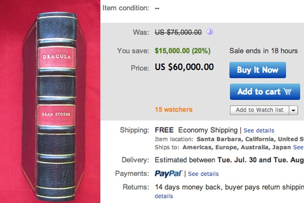 2. Bram Stoker, “Drácula” (autografado, primeira edição, 1897)