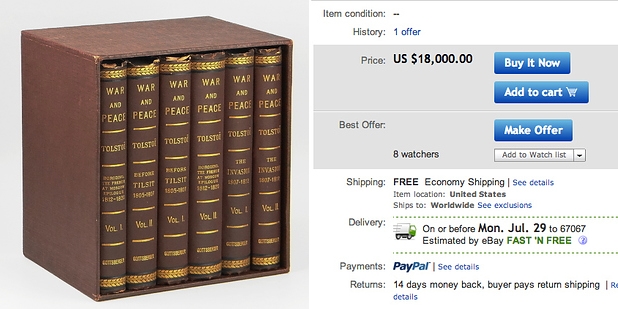 9. Leo Tolstoy, “Guerra e Paz” (primeira edição, EUA, 1885)