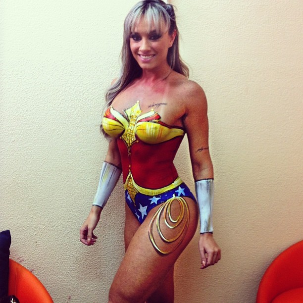 O site ComicBookMovie – uma das minhas fontes de pesquisa para gerar conteúdo aqui no LC – publicou ontem um post no qual mostra a modelo Juju Salimeni que atualmente participa do programa Legendários “pintada” de Mulher Maravilha e Homem-Aranha. O que mais surpreende é que ela foi enquadrada na categoria Cosplay, coluna semanal do site que mostra mulheres, geralmente, travestidas de seus personagens favoritos.