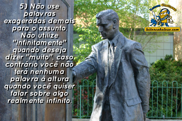 5) Não use palavras exageradas demais para o assunto. Não utilize “infinitamente” quando deseja dizer “muito”, caso contrário você não terá nenhuma palavra à altura quando você quiser falar sobre algo realmente infinito.