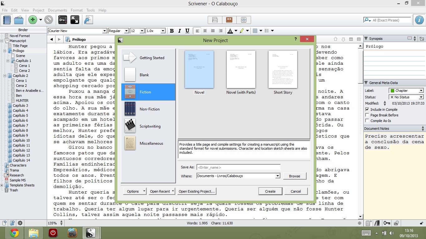 No Scrivener minha vida fica umas doze vezes mais fácil (e eu sei que isso tá parecendo propaganda de absorvente, mas é verdade, hein pessoal? Não to recebendo nada do Scrivener, não. É opinião verdadeira.)