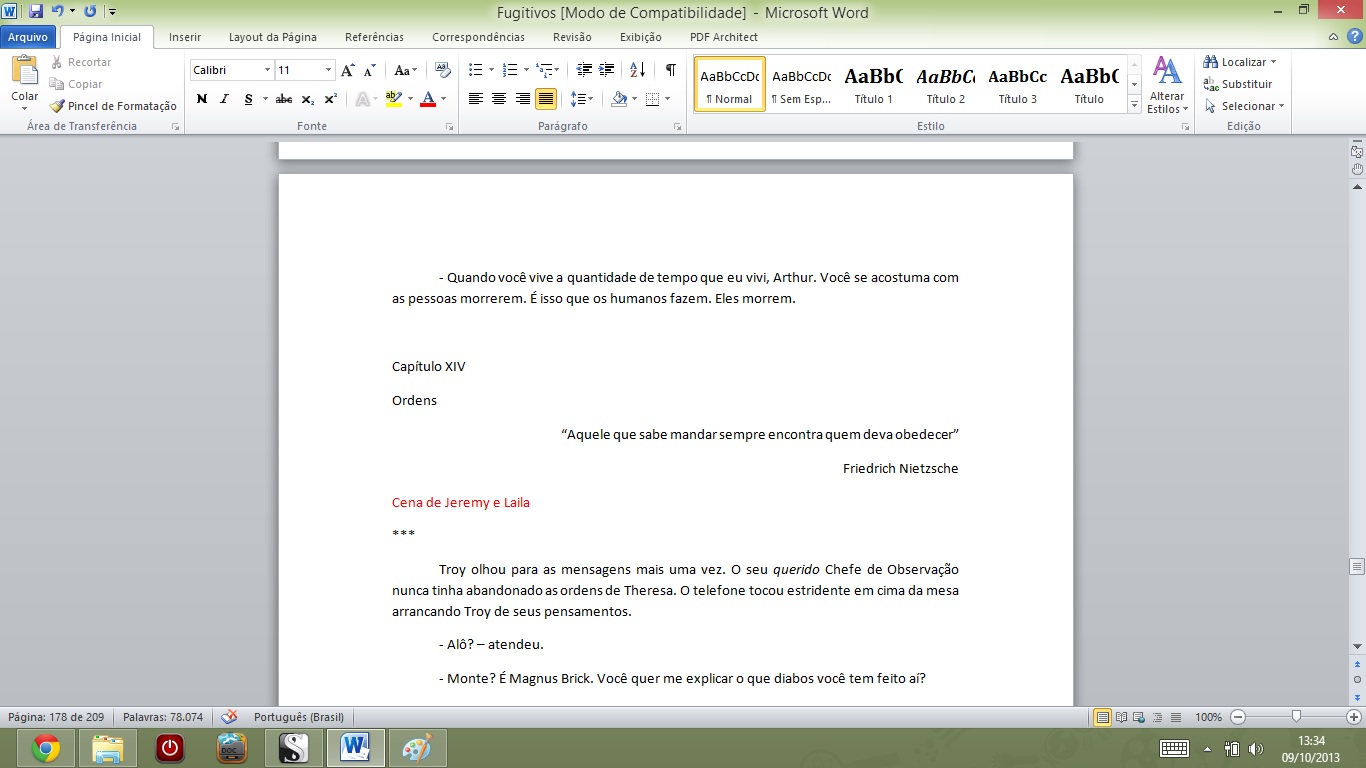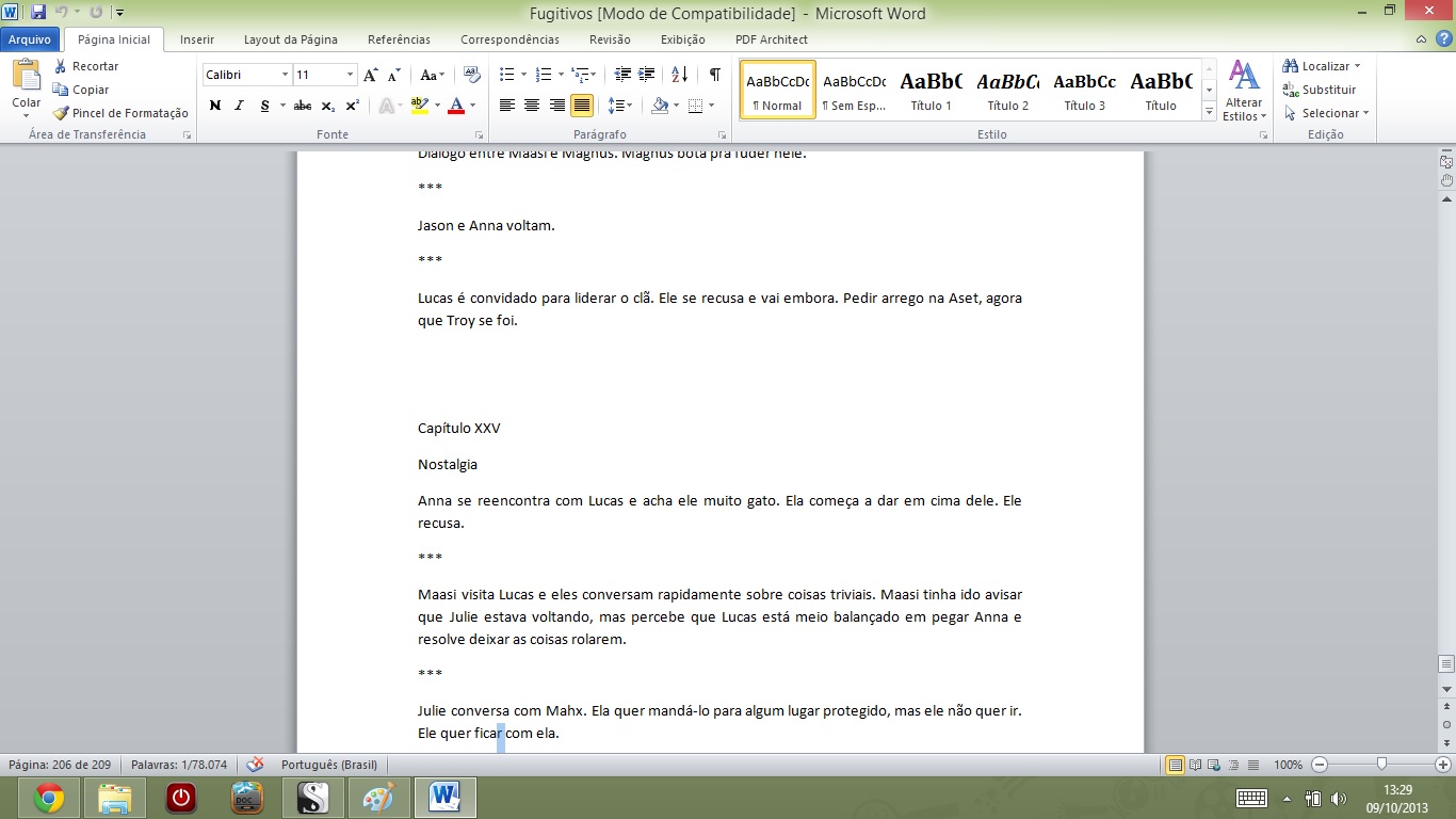 Eu nunca fui usuária desses programas “especiais” para escritores. Até já tentei usar o yWriter e o CeltX, mas eu sempre acabava voltando pro Word mesmo.