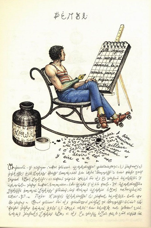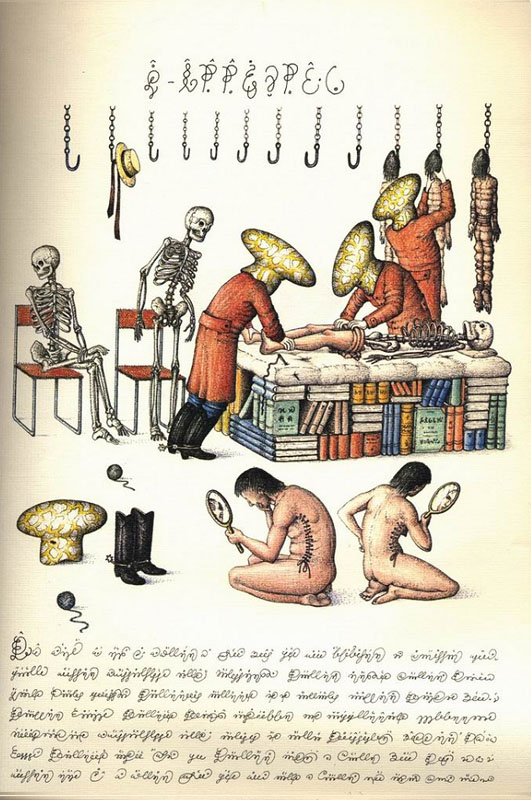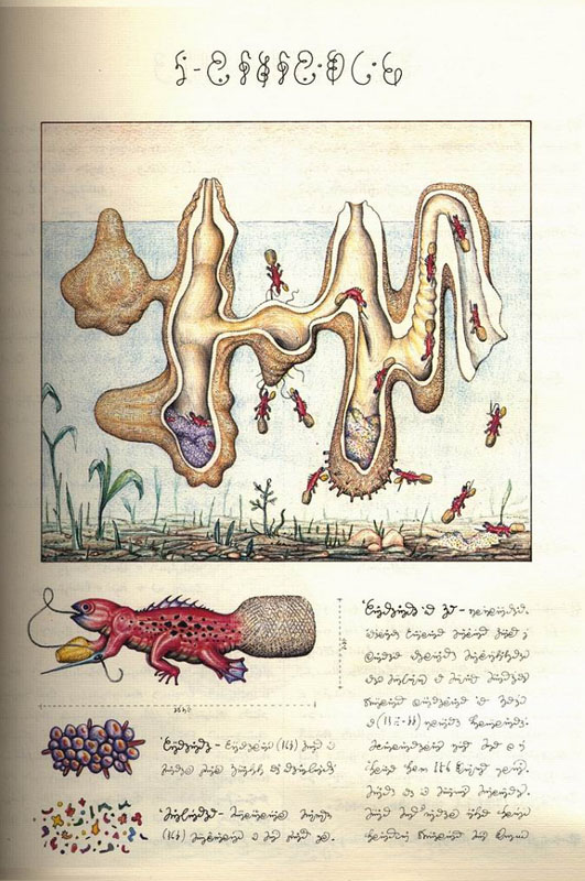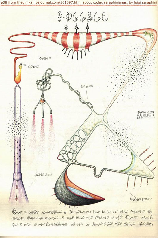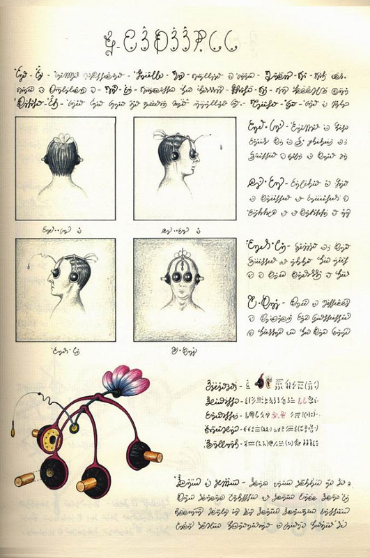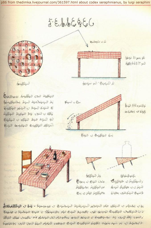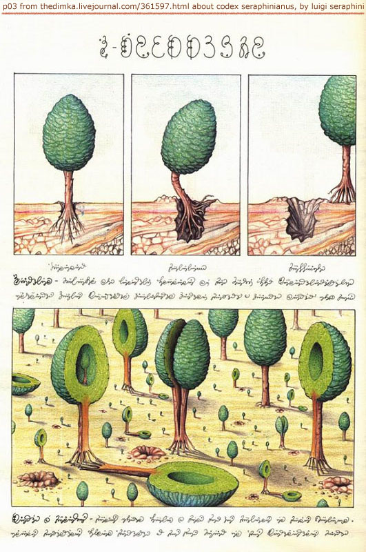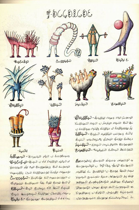Por volta dos anos 70, um arquiteto, ilustrador e designer industrial italiano Luigi Serafini, criou um livro. Possui 360-380 páginas. é escrito numa língua desconhecida, usando um alfabeto desconhecido. Demorou 30 meses para ele terminar sua obra-prima, que chamou de “o livro mais estranho do mundo”. Codex Seraphinianus é dividido 11 capítulos e em duas partes – A primeira sobre a natureza e a outra a respeito de pessoas.