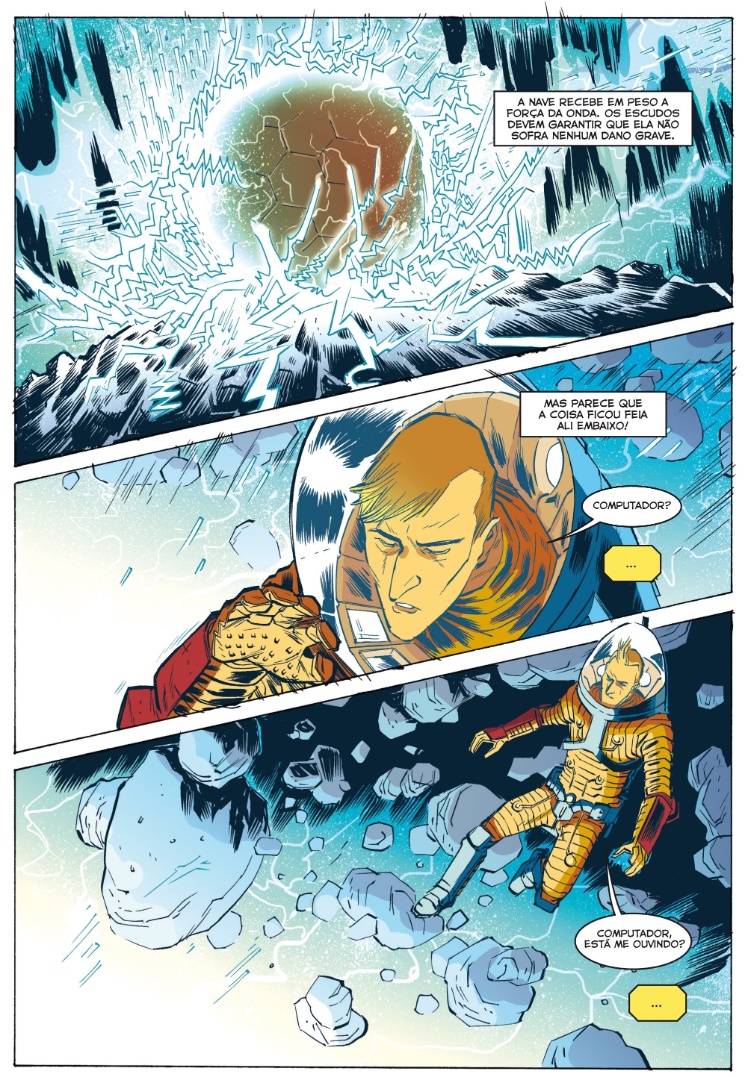 Para quem não é muito familiarizado com o gênero ficção científica (como eu) pode ficar um pouco confuso no início, mas isso se mantém só nas primeiras páginas. Astronauta Magnetar é uma Graphic para qualquer público, mas principalmente aquele que acompanhou na infância as aventuras do Astronauta e agora se maravilha em vê-lo em traços tão reais e ao mesmo tempo tão conhecidos.