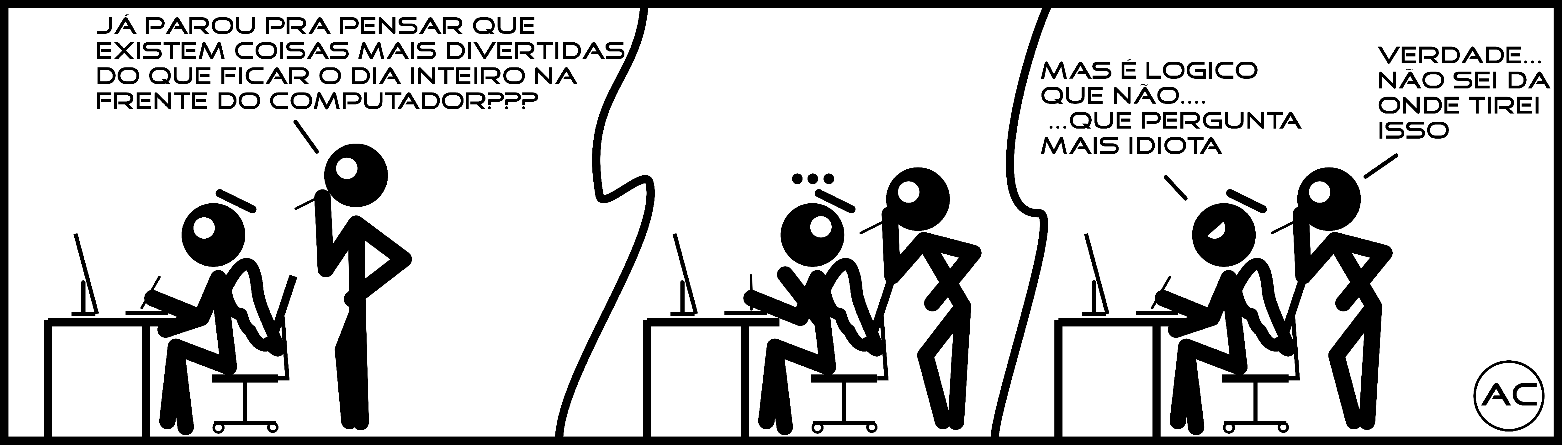 O mais importante é você perceber que toda esta explicação, todo este blá, blá, blá fica no subentendido. Você, leitor, faz todas estas associações de forma tão mundana que pouco fica evidente, para aqueles que dizem que ler é bobagem, ou julgam que quem lê está perdendo tempo está ai uma boa prova do contrário. E o mesmo podemos dizer do autor da tira, que ao usar a frase do universo das HQ’s, esperou que o leitor fizesse a ponte necessária para entender a piada.