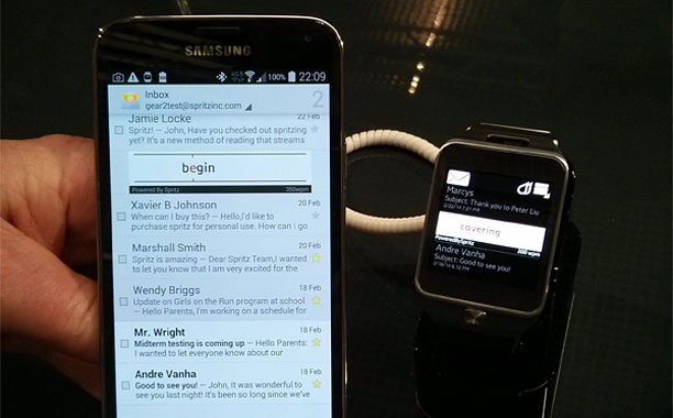 A empresa anunciou recentemente na Mobil World Congress, em Barcelona que lançará sua tecnologia no Samsung Galaxy S5 e no relógio Samsung Gear 2. E com o telefone ou relógio, os leitores serão capazes de processar uma palavra de cada vez em várias velocidades de rolagem. Se alguém optar por 250 ou 1.000 palavras por minuto, o Spritz está contando em fazer o cérebro mudar a forma como se espera e analisa textos.