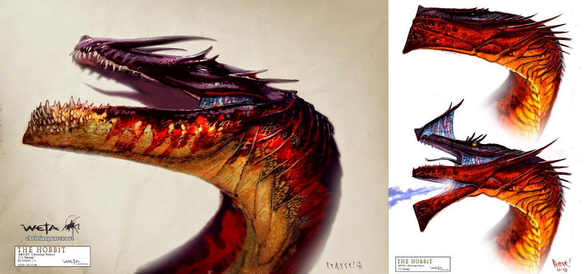Ilustrador conceitual, Christian Pearce (“Elysium”), atualizou seu site com projetos não utilizados para o dragão Smaug para a adaptação de Peter Jackson, O Hobbit: Desolação de Smaug. Confira!