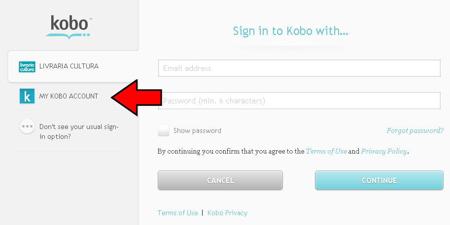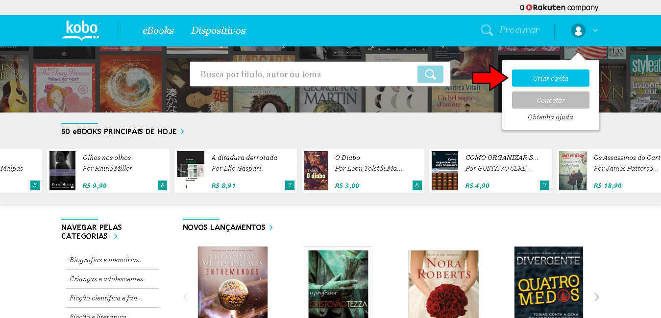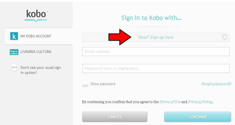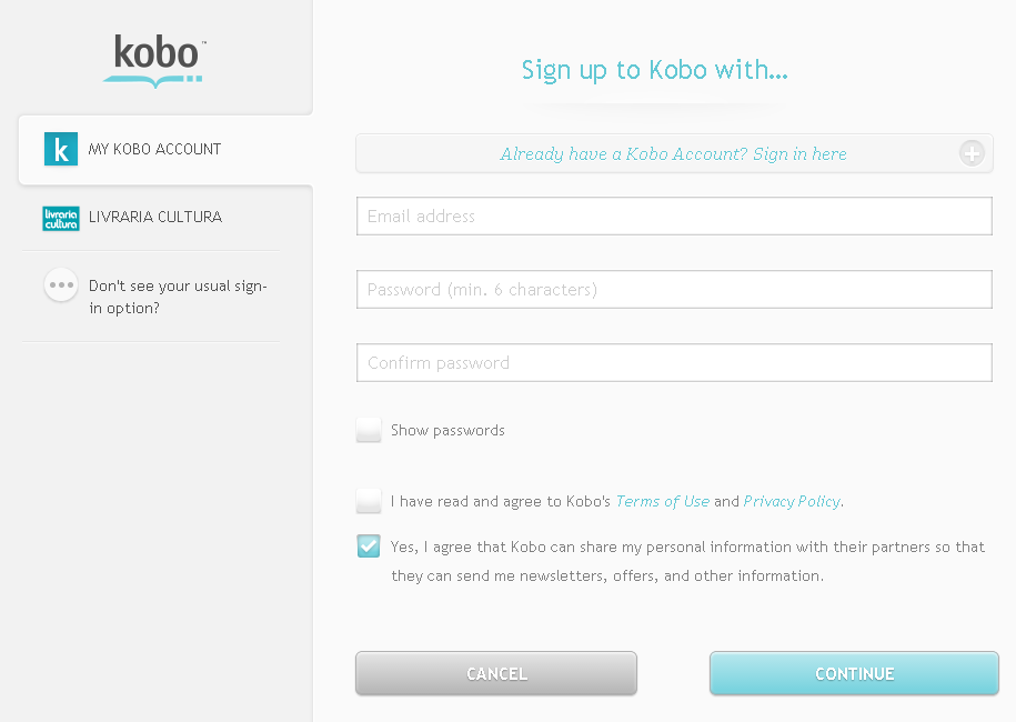 Mas para quem não tem uma conta Kobo, vamos ao cadastro: