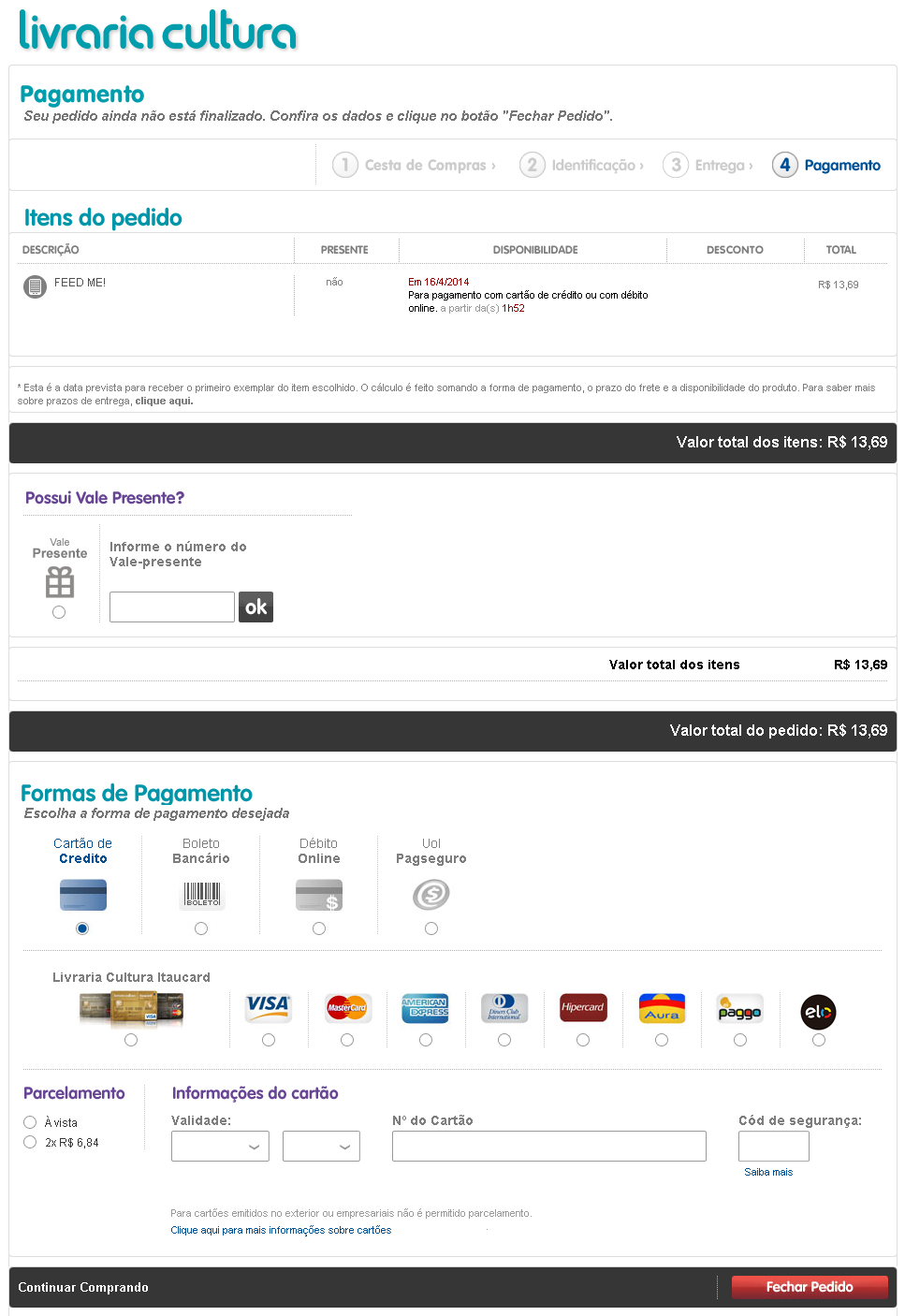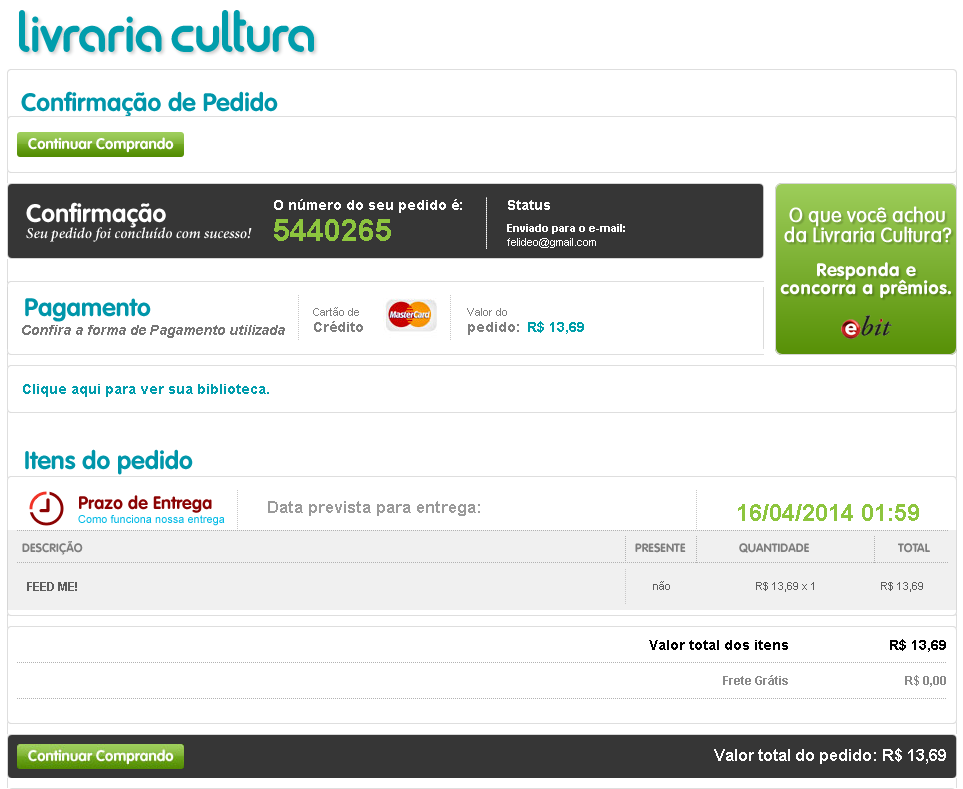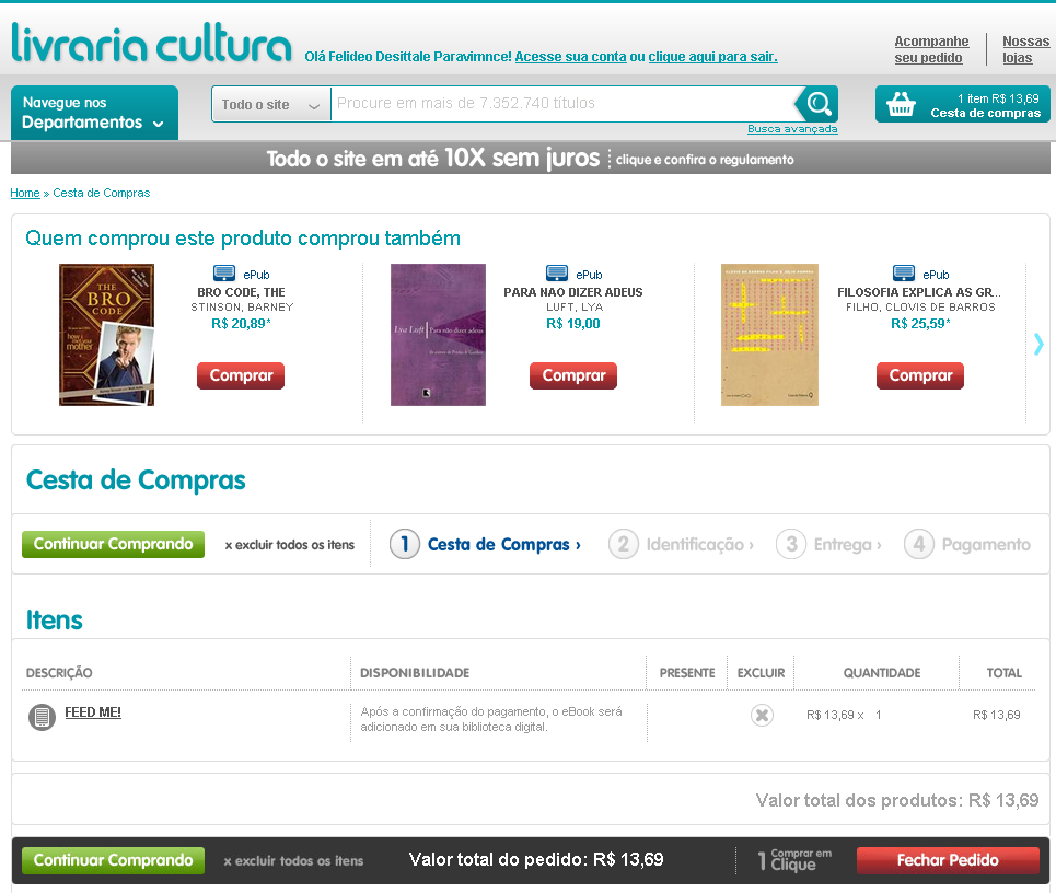 Neste post, explicarei o procedimento para compra de livros digitais na Livraria Cultura, que é praticamente o mesmo procedimento para toda e qualquer livraria que venda livros digitais, e por mais que eu prefira comprar diretamente da Kobo (que é parceira e da Livraria Cultura), escolhi a exemplificar pela Livraria Cultura, por ser umas das maiores lojas aqui no Brasil.