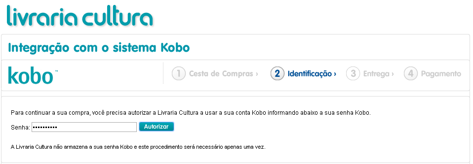 Feito o cadastro nós vamos às compras!!! Penso que esta afirmação é errada (penso, não tenho certeza) pois durante o procedimento da primeira compra de um livro digital na Livraria Cultura, a mesmo pede a seu senha da Loja Kobo, para conectar as duas lojas! Não sei se, caso você não tenha uma conta na Loja Kobo, vai ser possível efetuar a compra do livro digital, no meu caso como eu já tinha uma conta Kobo, apenas liguei as duas contas e pronto.