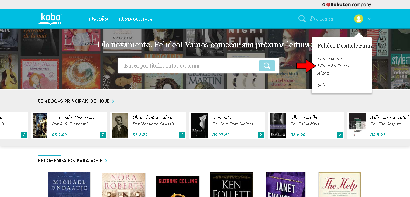 Então vamos ver nossa biblioteca virtual na loja Kobo.
