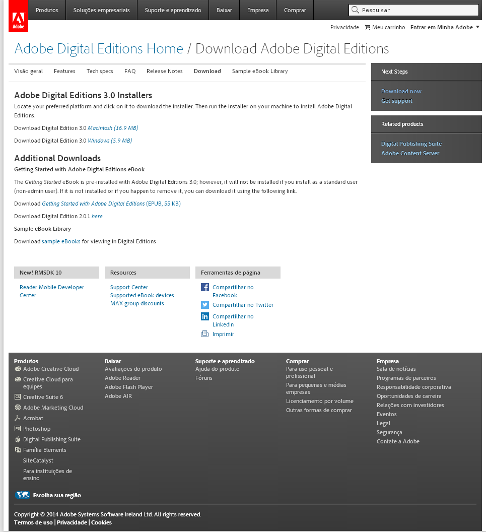 Para baixar o programa: http://www.adobe.com/br/products/digital-editions/download.html