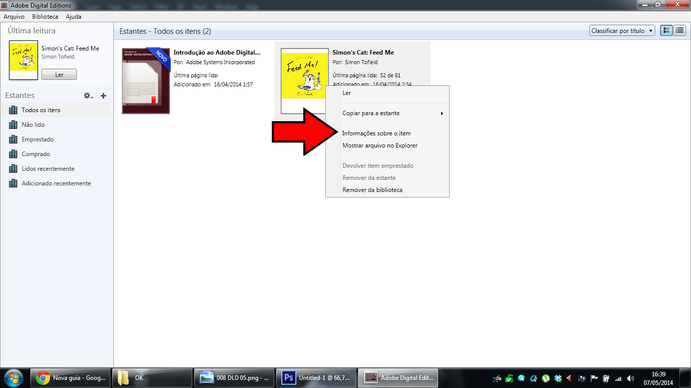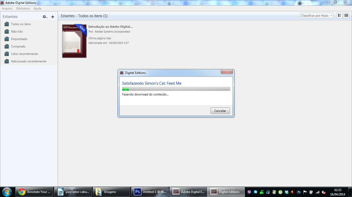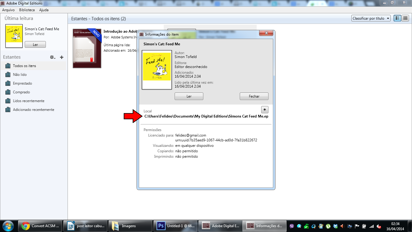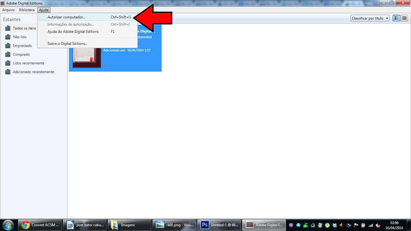 Feito o cadastro basta abrir o arquivo que você deu download na loja Kobo com o Adobe Digital Edition.