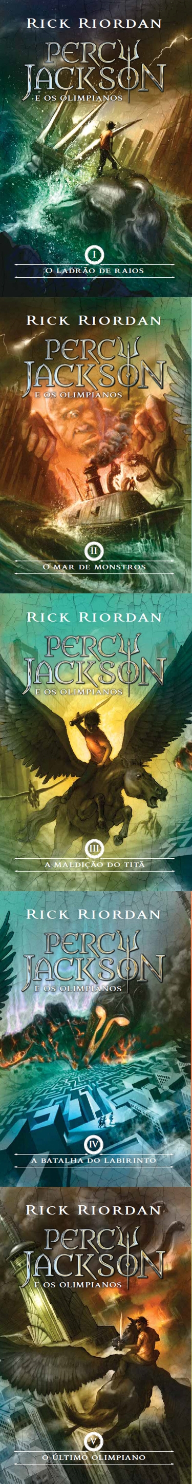 Olá querido leitor! Pode começar a quebrar seu porquinho ou economizar dinheiro, pois a saga Percy Jackson retorna as livrarias com capas novos com as lindíssimas ilustrações de John Rocco que também foi responsável pelas capas originais da série. Segundo a Editora Intrínseca: ” O ladrão de raios, O Mar de Monstros, A maldição do titã, A batalha do Labirinto e O último olimpiano retornam às livrarias em agosto com novas capas. Se colocadas uma ao lado da outra, as capas das novas edições formam um mural panorâmico que conta a inesquecível saga de nosso semideus favorito. A série com as novas capas será relançada em 18 de agosto.”