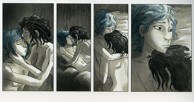 Não sei como me prolongar mais sem dar spoiler de um ou outro, mas recomendo que leiam/assistam e tentem enxergar as nuances ‘azuis’ que a história passa ao leitor/espectador. Na verdade, foram duas perspectivas que me emocionaram, cada qual a sua maneira, sem perder a essência do amor entre as protagonistas… finais trágicos e poéticos da mesma forma… No filme, o final deixa uma ponta solta, que dá margem a pensar no que vem depois. Na HQ, a história se consome por si mesma, mas deixa igualmente, um nó na garganta e um soluço angustiado preso ao peito…