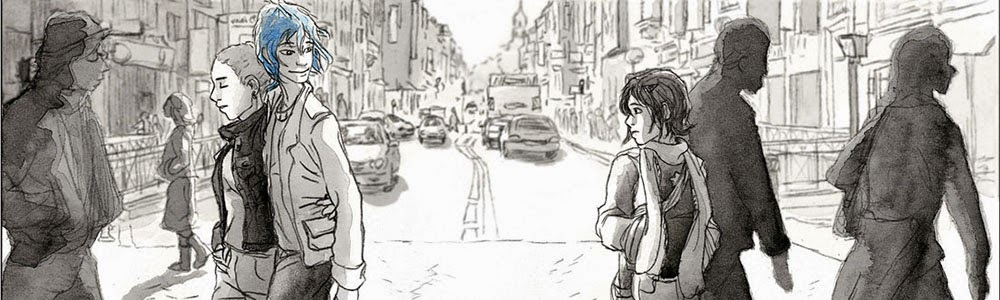 Falo da história de Clémentine [ou Adèle, caso tenham visto o filme]. Azul é a cor mais quente é uma HQ escrita por Julie Maroh e fala sobre a descoberta do amor num relacionamento entre duas garotas, bem como da dificuldade de aceitação na sociedade por conta de suas ‘escolhas’. A garota de cabelos castanhos, Clémentine, tem apenas 15 anos e sente-se perdida em seus devaneios e existencialismo. Acaba conhecendo Emma, por um acaso qualquer do destino, ao cruzar uma rua, e aquelas madeixas azuis começam a povoar seus sonhos mais íntimos…