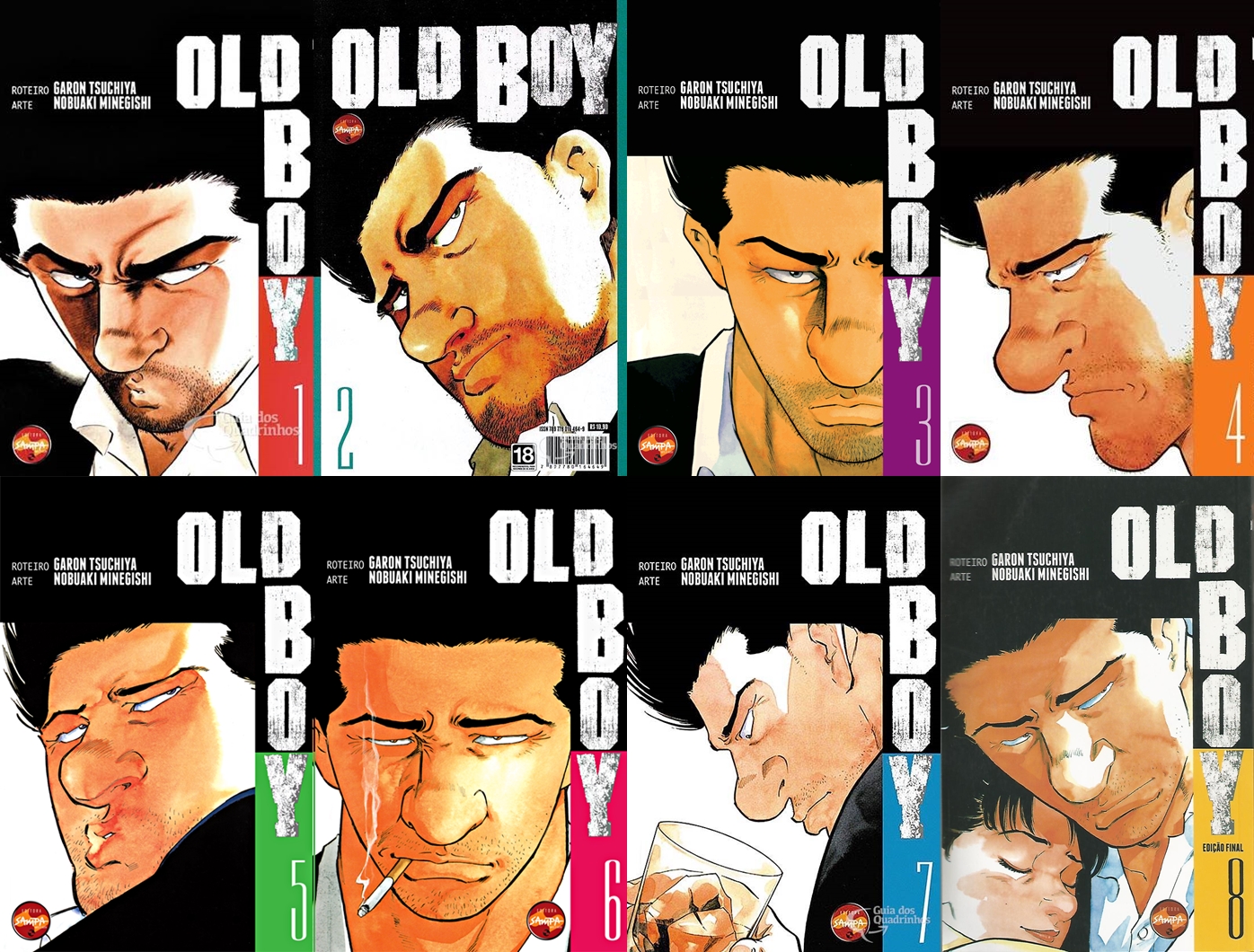 Old Boy conta a história mais por imagens do que diálogos e isso torna a leitura super rápida. O traço do mangá vai melhorando (quando peguei novamente o primeiro volume pra resenha até assustei). A edição da Nova Sampa é simples, sem páginas coloridas e com o papel jornal comum. Houve um grande hiato quando o mangá chegou no quarto volume deixando os colecionadores meio desesperados pensando que o título foi cancelado, mas felizmente ele voltou e a Nova Sampa para compensar lançou os quatro restantes em dois meses.