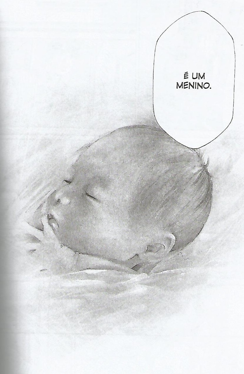 Quando você pega o mangá em mãos vê que o valor vale a pena. Ele tem orelhas, oito páginas coloridas além de ser um papel diferente do comum jornal. Outra coisa que chama logo a atenção é a arte muito bem feita! Esse é um dos motivos que me fez apreciar a obra. Tanto as cenas de horror quanto os detalhes são muito bem feitos. Veja, por exemplo, esse desenho do filho do casal ainda bebê: