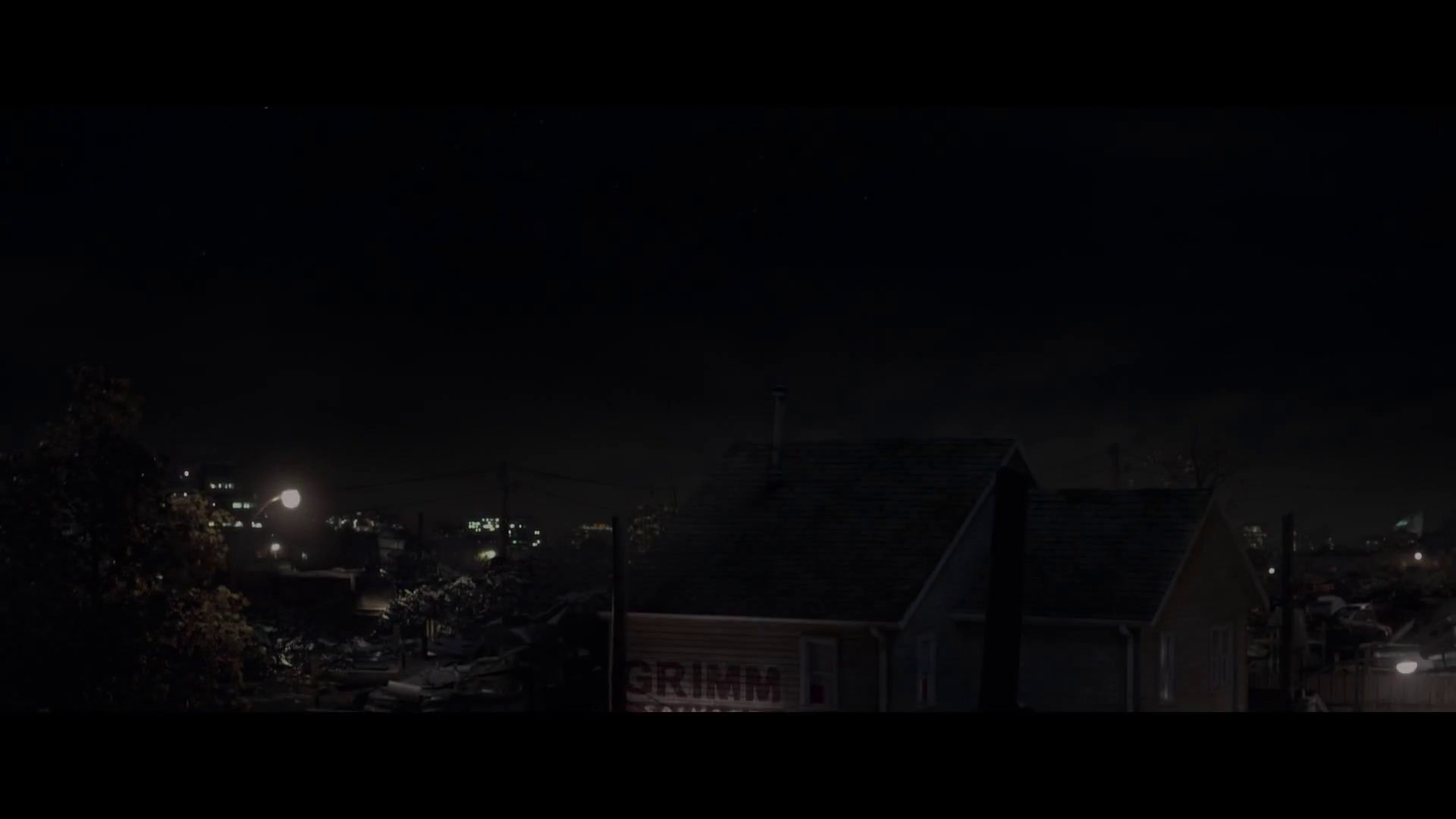 A primeira cena que gostaria de dar destaque são as inicias com plano aberto. Mostrando uma cidade, montanhas e… as costas de uma casa escrito Grimm, ou seja, esta é a casa onde mora Jacob Grimm e quem sabe é lá onde o jovem Reed Richards faz aquele experimento.