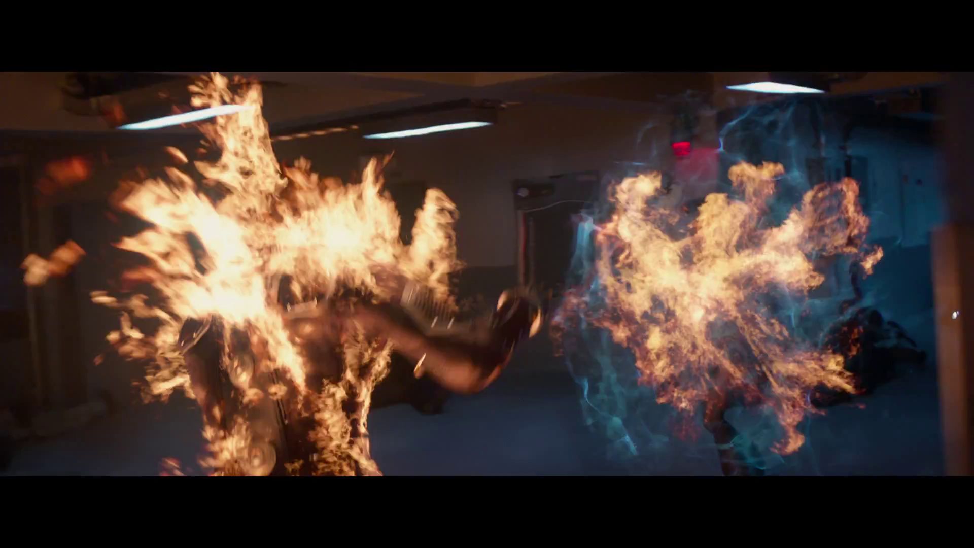 Mais a frente, temos Reed Richards e sua equipe entrando na capsulas que irão levá-los para outro universo. Perceba que existem 5 pessoas, o que confirma que Victor Doom estará entre eles. Outro ponto importante: assim que retornam acontece uma explosão. Seria essa explosão que teria deixado Victor no estado que vemos no final do teaser? Ainda falando da explosão, aparentemente ela será uma escala muito maior do que o laboratório, já que temos a cena em que o Tocha Humana está vendo o corpo (seria de um amigo?) e, de alguma forma, ele e a Sue vão se confrontar mais a frente.