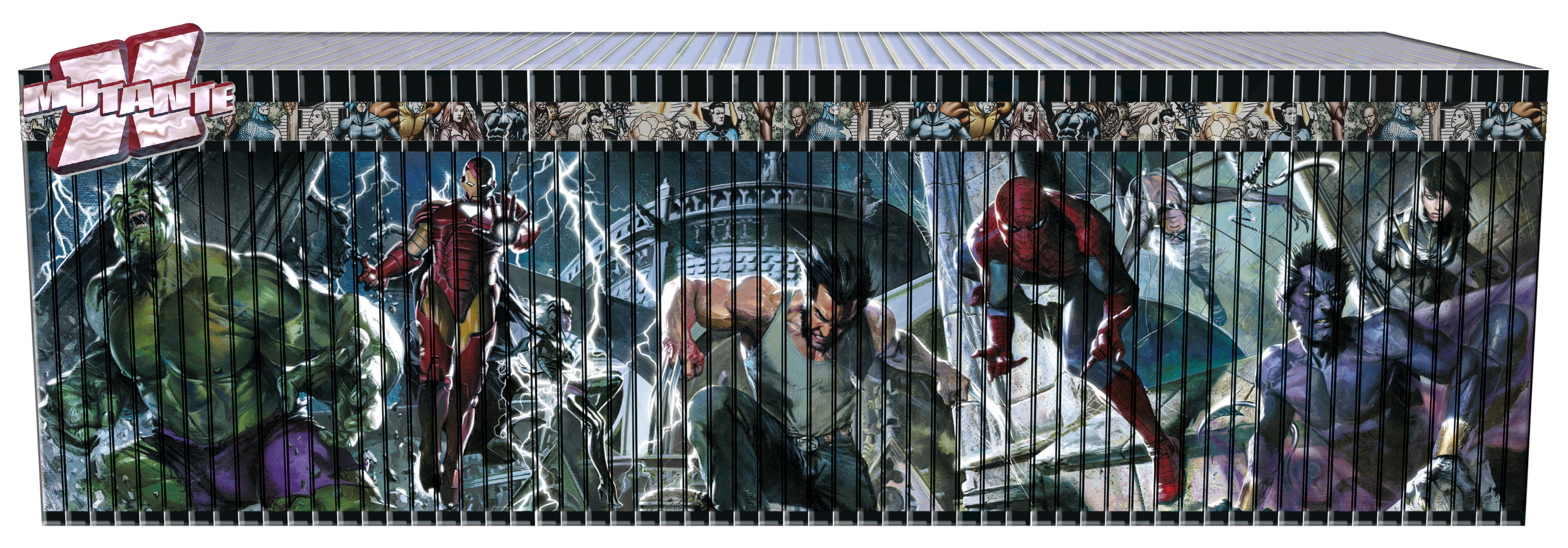 Como dito acima: o material é de primeiríssima qualidade. Além da já mencionada capa dura, o papel é belíssimo; cada volume traz um prequel explicando para o leitor os acontecimentos anteriores ao que é narrado nos encadernados e no final você tem geralmente detalhes sobre algum personagem (ou personagens) da HQ. Fora isso, também há entrevistas com os desenhistas e roteiristas e rascunhos dos bastidores da arte. E se você optar por adquirir todos os volumes (são 60 exemplares), colocados na ordem correta, a lombada forma a seguinte imagem: