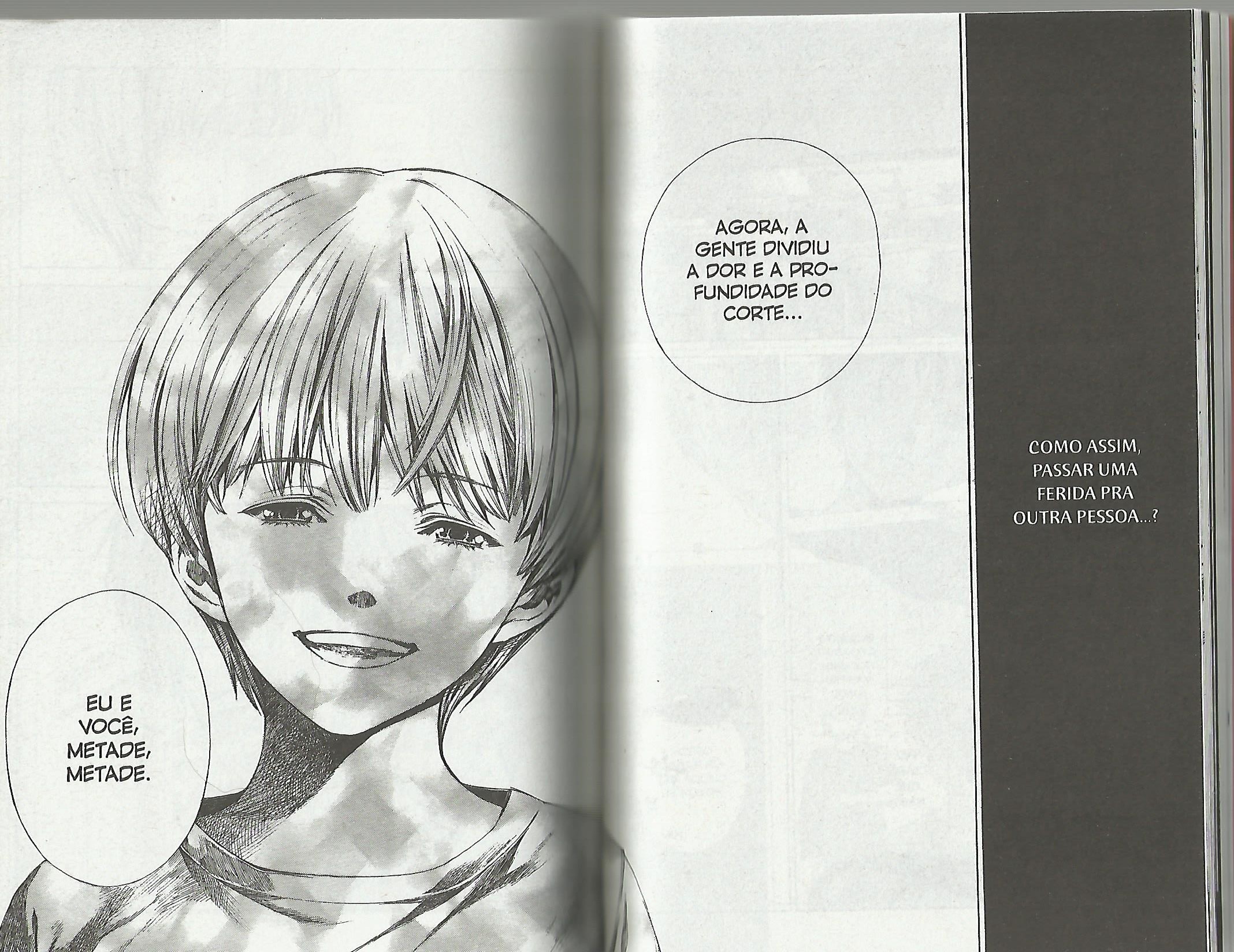 Feridas é mais um mangá que conta com o desenhista de Another e o mesmo autor de Só você pode ouvir. Já de início, vemos como a vida de Keigo é conturbada. Com um pai alcoólatra que batia nele e também na mãe frequentemente.