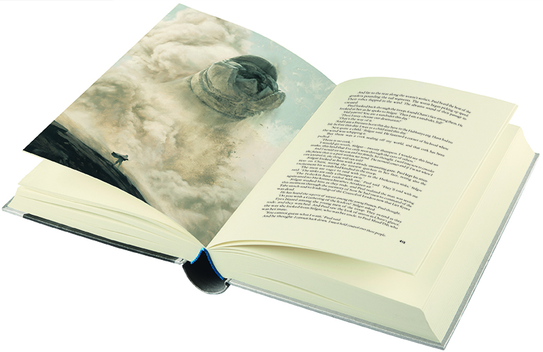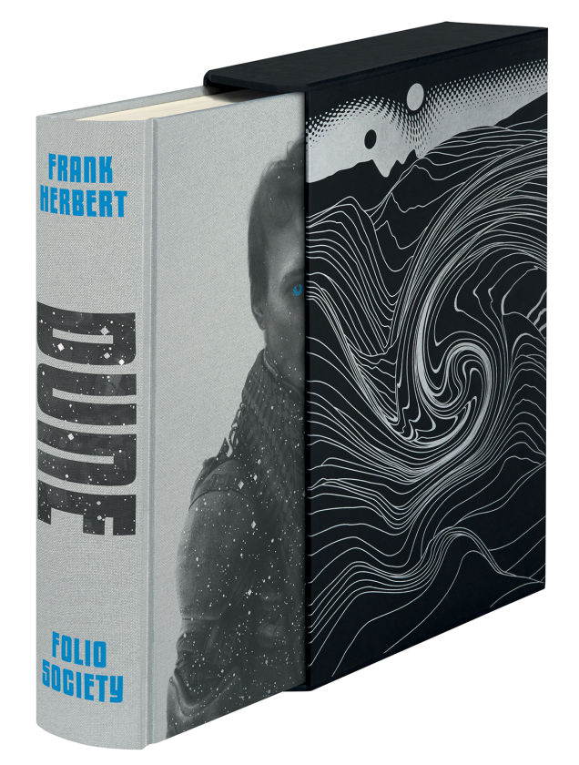 A Folio Society tem publicado edições ilustradas de obras clássicas premiadas desde 1947, incluindo dentre elas, títulos de ficção científica e fantasia emblemáticos. Eles acabaram de lançar uma bela edição de Duna de Frank Herbert com arte de Sam Weber, e isso é um motivo para os fãs do Duna e apreciadores da grande arte se alegrarem. Esta comemorativa de 50 anos contém onze ilustrações colorida e em preto e branco, bem como um slipcase do deserto de Arrakis.