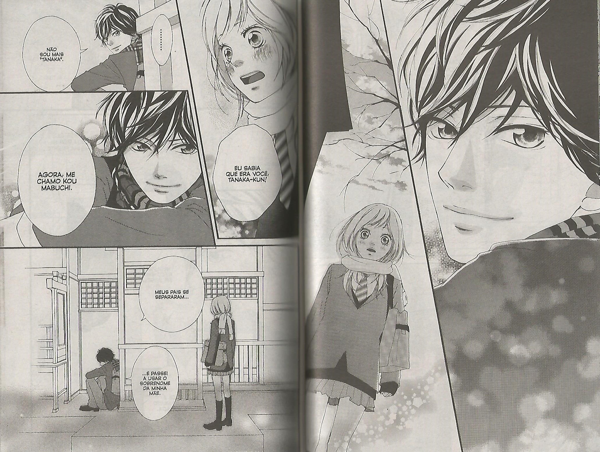 Diferente do anime, os outros personagens que completam a trama aparecem mais rápido. Já nos primeiros capítulos temos um vislumbre deles. Então já adianto que Aoharaido vai muito além do possível romance entre Futaba e Kou. São os pequenos detalhes, as ações dos personagens que fazem de Aoharaido um grande sucesso completamente justificável.