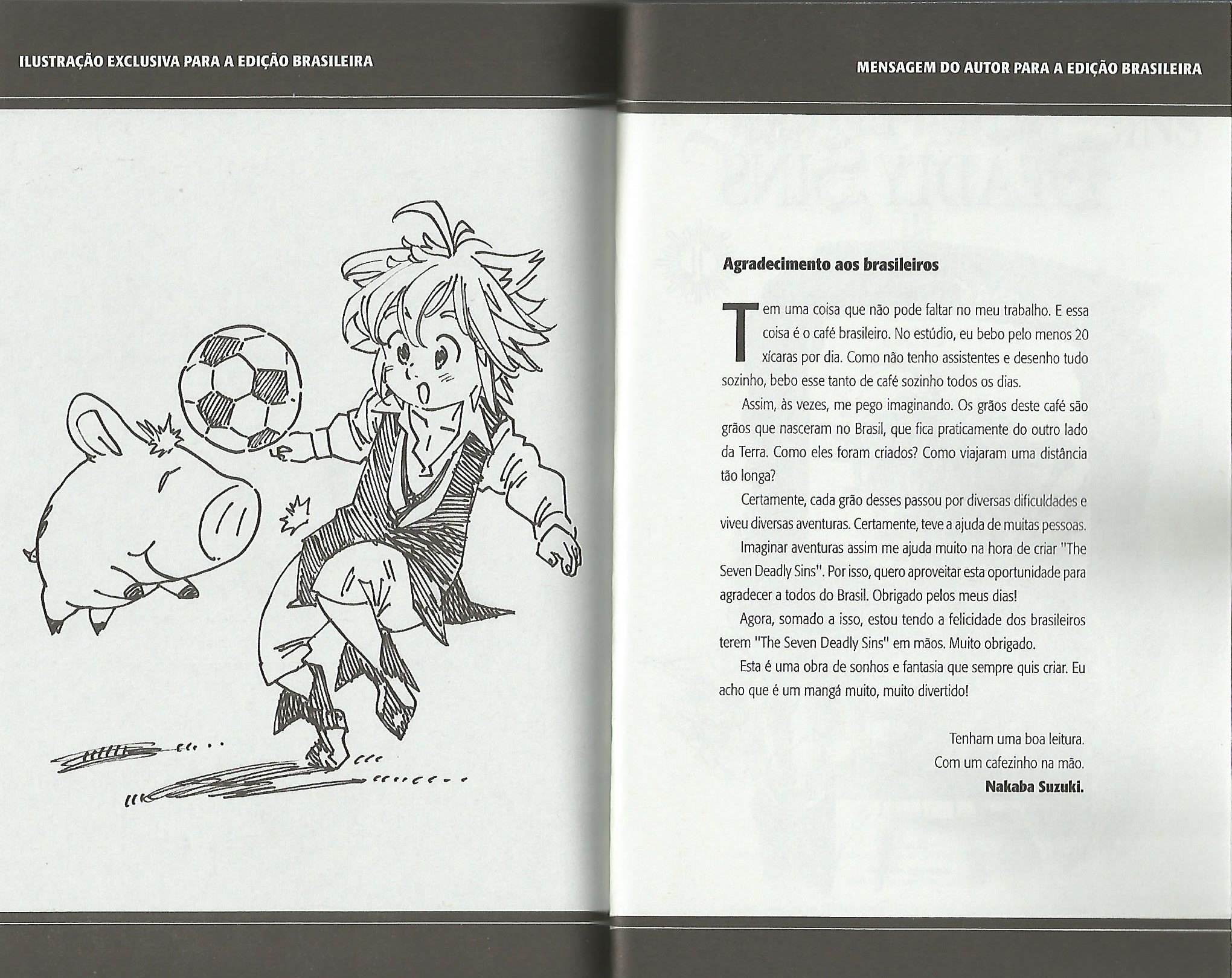 Uma coisa super legal nesse volume, é um recado e uma ilustração exclusiva para os brasileiros! Pelo jeito, Nakaba é um viciado em café e toma no mínimo 20 xícaras por dia para dar conta do trabalho…