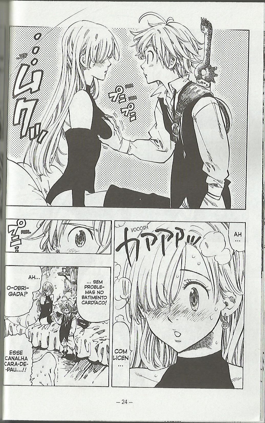 Nesse primeiro volume do mangá eles já encontram outro pecado. Pensava que talvez seria muito enrolado até juntar a trupe toda, mas acontece de forma rápida e claro, divertida. Esse é um dos grandes pontos do mangá: a diversão. Meliodas é um safado sem salvação e está sempre verificando as “partes” de Elizabeth. A diversão não fica só nas apalpações, o autor usa bem a habilidade de cada pecado para criar piadas e situações engraçadas entre eles.