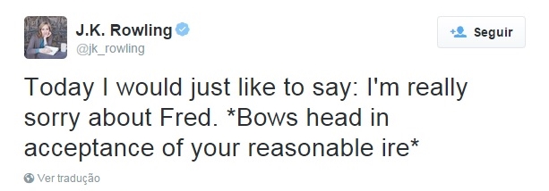 E quem foi o primeiro lembrado por Rowling foi Fred Wesley, que segundo ela, Fred foi o primeiro, já que foi o mais difícil.