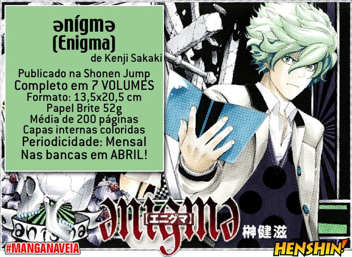 Diferente de outros mangás da linha que não me agradaram, Enigma tem um bom clima de suspense, mas por vezes ele é quebrado pelas próprias personagens que seguem o clichê do gênero. É um bom mangá, recomendo para quem ainda não leu nada do gênero ou não se importa com os clichês citados. Com um total de sete volumes, não é um mangá muito longo e nem muito curto, assim tenho esperanças de um final satisfatório.