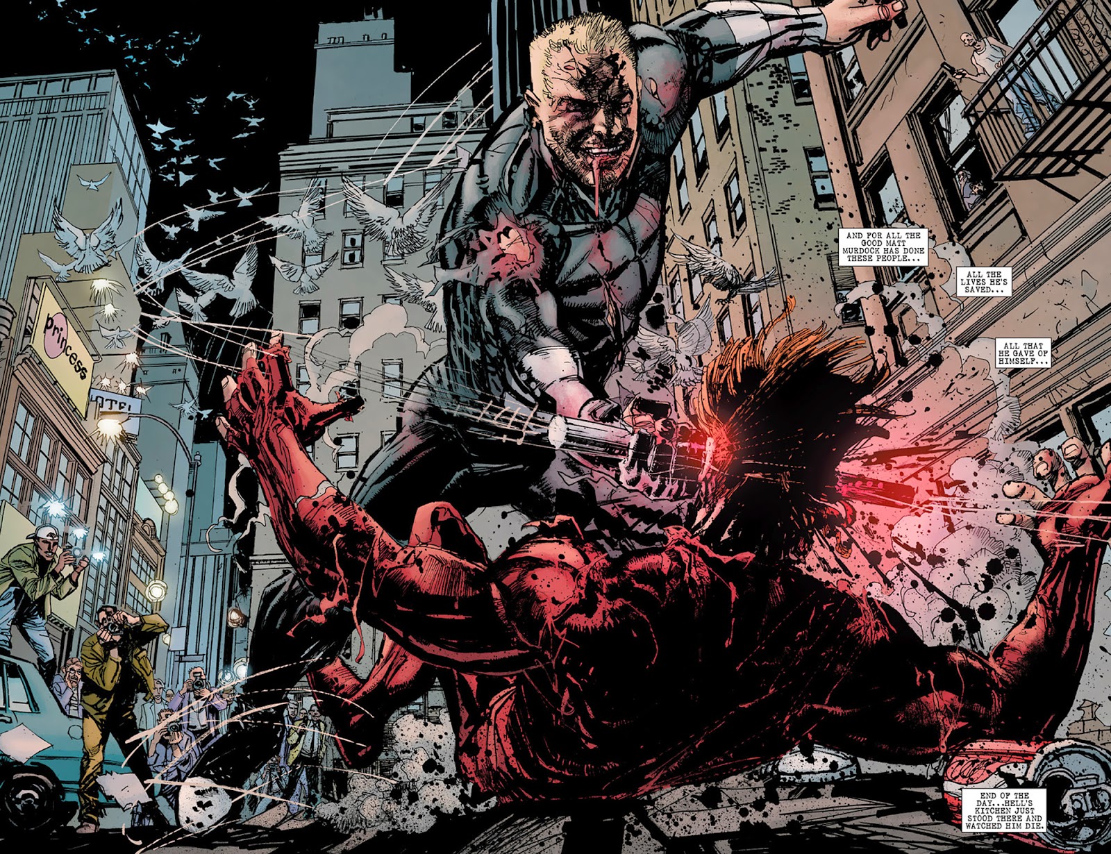 A narrativa é construída a partir do depoimento de várias figuras importantes da história do Demolidor, bem como da história dos quadrinhos da Marvel. Assim como a narrativa dúbia do próprio Ben Urich, temos Eco, Elektra, Justiceiro, Peter Parker e etc. Umas aparições bem justificadas e importantes, outras são simplesmente desnecessárias.