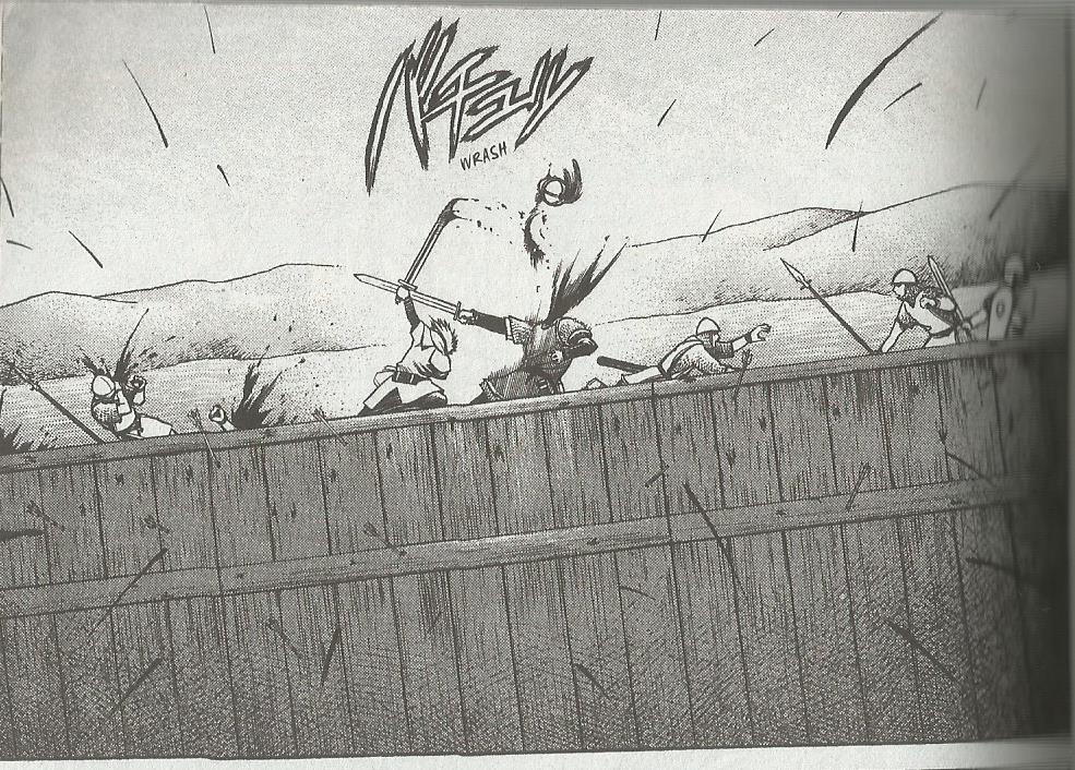 Na primeira parte do mangá vemos os vikings assim como acredito que eram: um bando de piratas sangrentos. Não nos é revelado ainda como e quando o pai de Thorfinn morreu, mas isso logo deve acontecer, já que na segunda parte do mangá começa o flashback da infância de Thorfinn em sua vila pacata juntamente com sua família.
