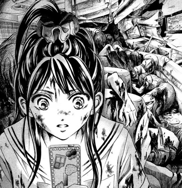 Para pessoas mais velhas (como eu) o conflito parece sem importância já que são questões de “Você era amiga dela e não minha” ou “Você tira notas boas e eu não” e isso quebra o clima que esperava do mangá. Ele tem sim um clima pesado, visto que os conflitos vão ficando cada vez mais mais fortes, porém achei que a questão da sobrevivência poderia ter um foco maior, poderia SER o foco maior. Claro que elas se preocupam com comida, abrigo e resgate, mas de forma rápida e, me pareceu, superficial. Acabei não gostando de nenhuma personagem. A principal não me atrai já que ela só seguia o que a líder do grupo fazia. Morishigue acaba sendo a vítima, mas fica tão transtornada e mandona que torcemos para que alguém dê um jeito na situação e a humilhe ainda mais. Isso claro é culpa minha, já que o mangá é shoujo e tem uma faixa etária menor, mas é um dos pouco shoujos que não me identifiquei com ninguém.