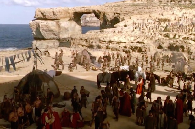 O arco Azure Window, em Malta, aparece no casamento entre Daenerys Targaryen e Khal Drogo.