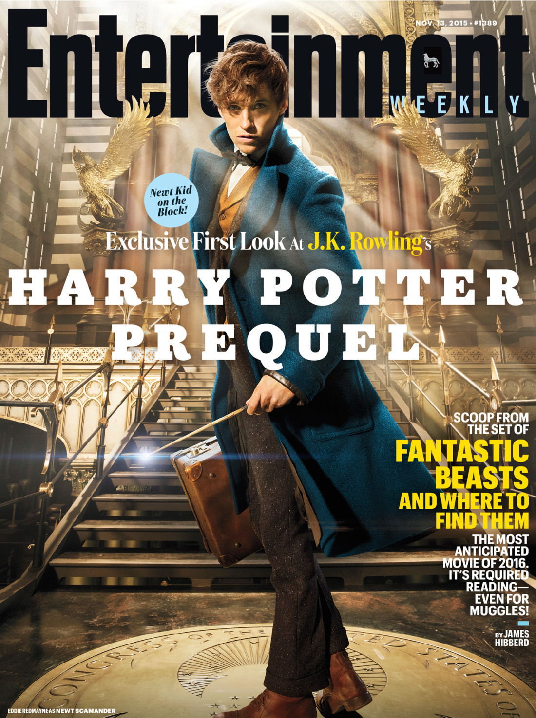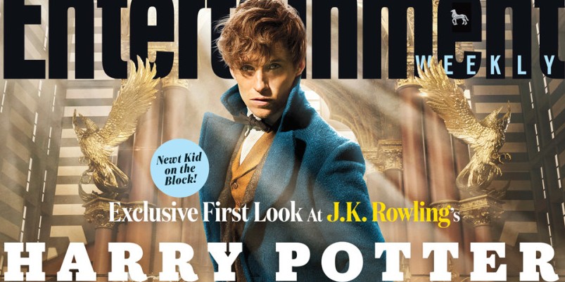 Depois, a primeira imagem, na capa da revista Entertainment Weekly, do ator Eddie Redmayne como Newt Scamander, o protagonista, mago, escritor e herói de Animais Fantásticos e Onde Habitam.