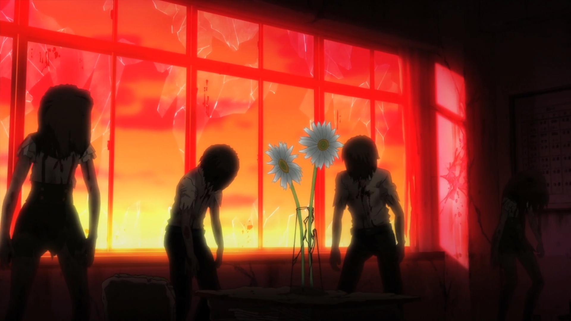 Os zumbis são diferentes do que conhecemos, visto que eles tem parte de memórias da “vida passada”. Na verdade não são memórias e sim costumes, como por exemplo, no horário que seria o final das aulas, o número de zumbis na escola diminui porque eles vão para casa. Claro que isso foi usado em diversas ocasiões durante o anime, o que acho válido, porém o final não me agradou por aquele motivo de “Por que vocês nunca fizeram isso antes?”
