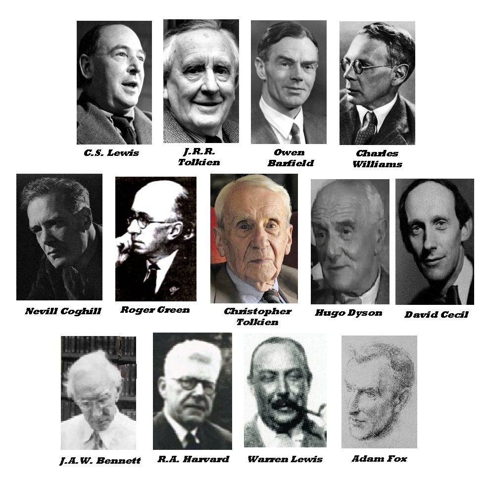 C. S. Lewis, Owen Barfield, Charles Williams, Adam Fox, Hugo Dyson, Robert Havard, Nevill Coghill, Charles Leslie Wrenn, Roger Lancelyn Green, Colin Hardie, James Dundas-Grant, John Wain, R. B. McCallum, Gervase Mathew, C. E. Stevens, J. A. W. Bennett, Lord David Cecil, Christopher Tolkien e Warren “Warnie” Lewis (irmão mais velho de C. S. Lewis).