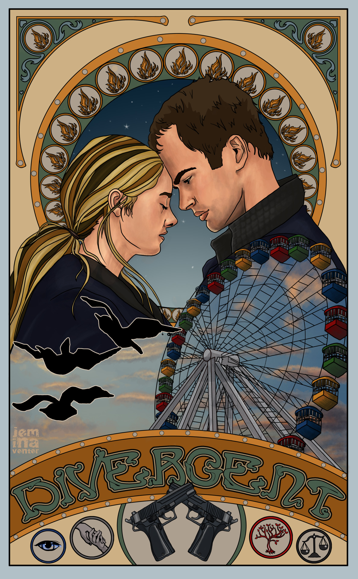 Art Nouveau (em francês, Arte Nova), é um estilo de arte criado como forma de crítica a arte acadêmica do século XIX, inspirado em estruturas naturais, não apenas flores e plantas, mas também linhas e curvas. Foi muito utilizada na feitura de capas de livros clássicos e fazendo uma busca aleatória acabei me deparando com vários pôsteres de filmes inspirados neste estilo.